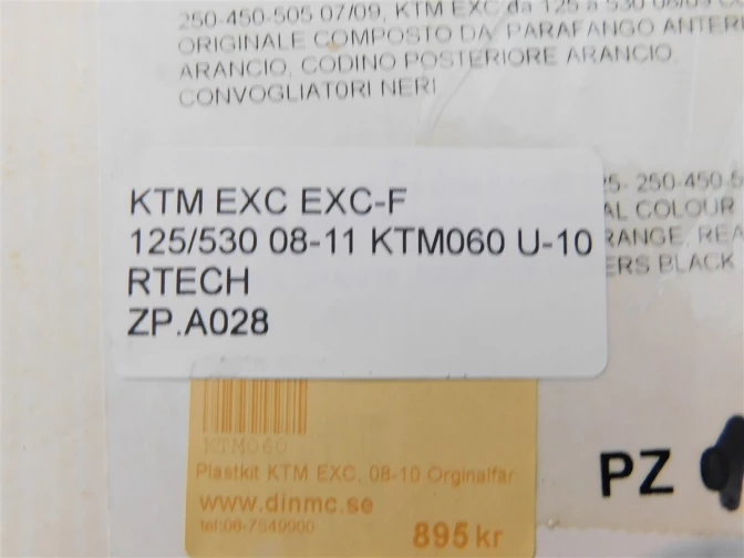 PLASTIKI OWIEWKI ZESTAW KTM EXC EXC-F 125/530 08-11 KTM060 U-10 RTECH