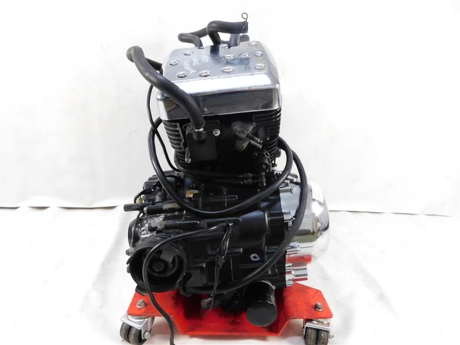 Silnik sprzedawany jako tzw. 'goły słupek' - bez kosza sprzęgłowego, bez pokryw lewej i prawej, bez statora, bez alternatora, bez gaźników/przepustnic, bez rozrusznika (nożnego, elektrycznego), bez skrzyni biegów (jeżeli jest zewnętrzna)