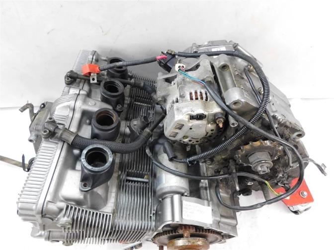 Silnik sprzedawany jako tzw. 'goły słupek' - bez kosza sprzęgłowego, bez pokryw lewej i prawej, bez statora, bez alternatora, bez gaźników/przepustnic, bez rozrusznika (nożnego, elektrycznego), bez skrzyni biegów (jeżeli jest zewnętrzna)